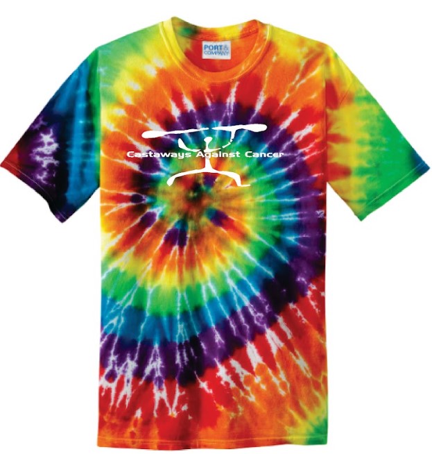 Castaways Kayak Man Logo on Front, "Peace Love & A Cure" on back. Short Sleeve.